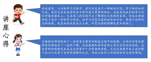 “纸上得来终觉浅,绝知此事要躬行。”通过行业专家讲座,让学生们有机会跳出课本,从应用的角度去学习知识、思考问题。两场讲座结束后,同学们纷纷表示讲座不仅加深了对变压器知识的理解,同时对电力专业以及电力行业有了更深刻的认识与感悟,激励电气学子志存高远,砥砺前行。