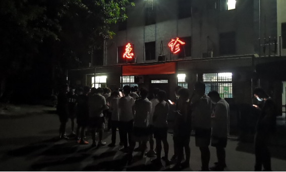 图为实习期间同学积极配合连夜排队检测核酸