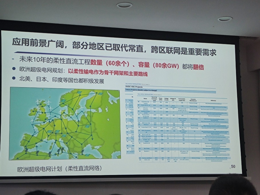 赵所长首先介绍了南网科研院的基本概况以及在我国直流工程系统设计与研究方面取得的研究成果。随后,赵所长从发展历程、技术原理、核心设备、成套设计、应用场景五方面对柔性直流输电技术进行了介绍,展现了柔性直流输电技术的广阔应用前景。最后,赵所长总结了南网科研院目前在柔性直流输电领域取得的研究进展,并对新能源经柔直送出、宽频振荡、故障穿越等研究热点以及未来发展趋势进行了展望。
