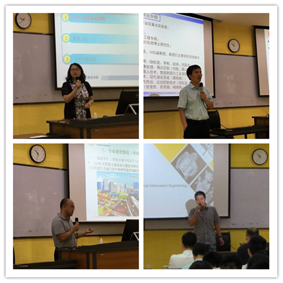 电气工程系主任王渝红教授、自动化系主任佃松宜教授、通信工程系主任钟俊副教授、医学信息工程系主任张劲副教授分别就本系的专业特色、师资力量、科研领域、人才培养情况做了具体的介绍,使参加的同学们对学院各专业有了更加整体全面的了解。
