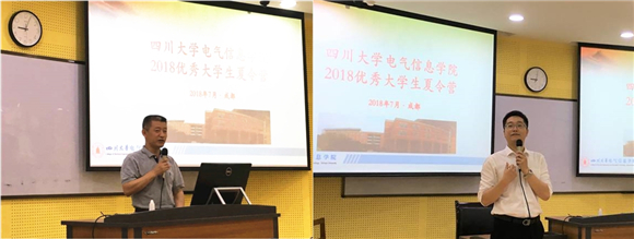 电气信息学院夏令营开营仪式在研究生院大楼1-104隆重举行。来自武汉大学、电子科技大学、华南理工大学等25余所高校的160多名营员参加了开营仪式。电气信息学院党委书记韩芳,院长肖先勇,党委副书记张英敏,副院长吕林、李长松、刘友波,电气工程系主任王渝红,电气工程系副书记刘亚梅,自动化系主任佃松宜,通信工程系主任钟俊,通信系书记刘念,医学信息工程系主任张劲,电工电子基础教学实验中心主任周群,博士生导师刘天琪和其他相关负责老师出席了仪式。开营仪式由电气信息学院副院长刘友波主持。