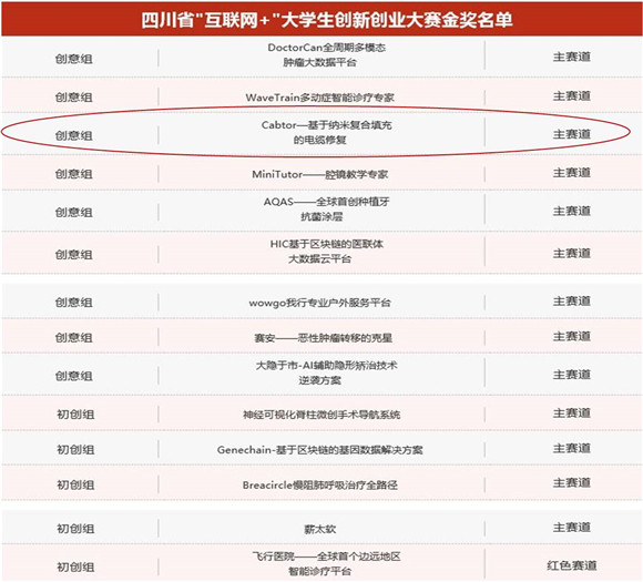 “Cabtor—基于纳米复合填充的电缆修复”团队在周凯老师的指导下,取得了省赛金奖的好成绩。