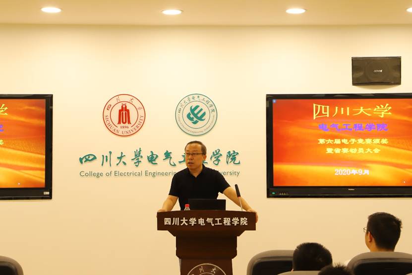 第六届电子设计竞赛颁奖暨2020省赛动员大会在望江校区基础教学楼B206顺利召开。参加大会的有学院副院长李长松,周群、刘雪山、李国才等指导教师代表,教导员李小根老师,以及获奖同学代表。