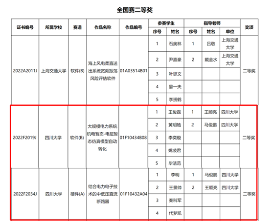 王俊磊等同学的 “大规模电力系统机电暂态-电磁暂态仿真模型自动转化”项目和李明等同学的“结合电力电子技术的中低压直流断路器”项目获全国二等奖,陈茂林等同学的“兼具低成本、大功率、高制氢效率的新型整流器混合拓扑及控制策略”项目获全国三等奖。MX动漫
