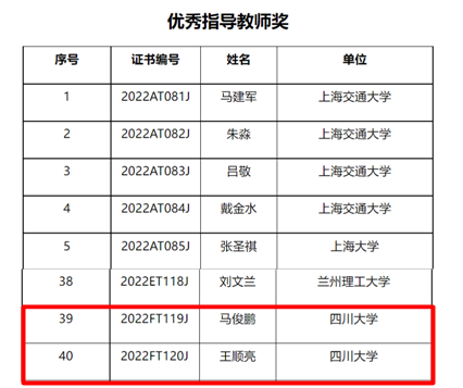 “电力系统稳定与高压直流输电”研究团队王顺亮副教授、马俊鹏副教授获优秀指导教师奖。