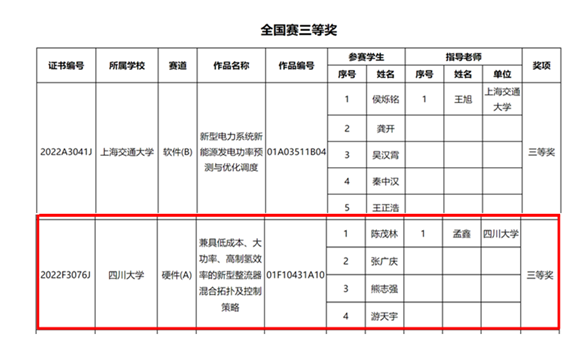 第一届高校电气电子工程创新大赛全国赛获奖名单详见://ces.org.cn/html/report/22092497-1.htm