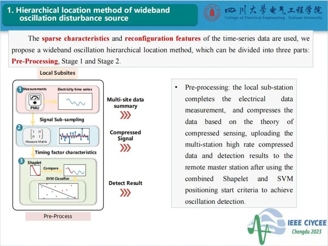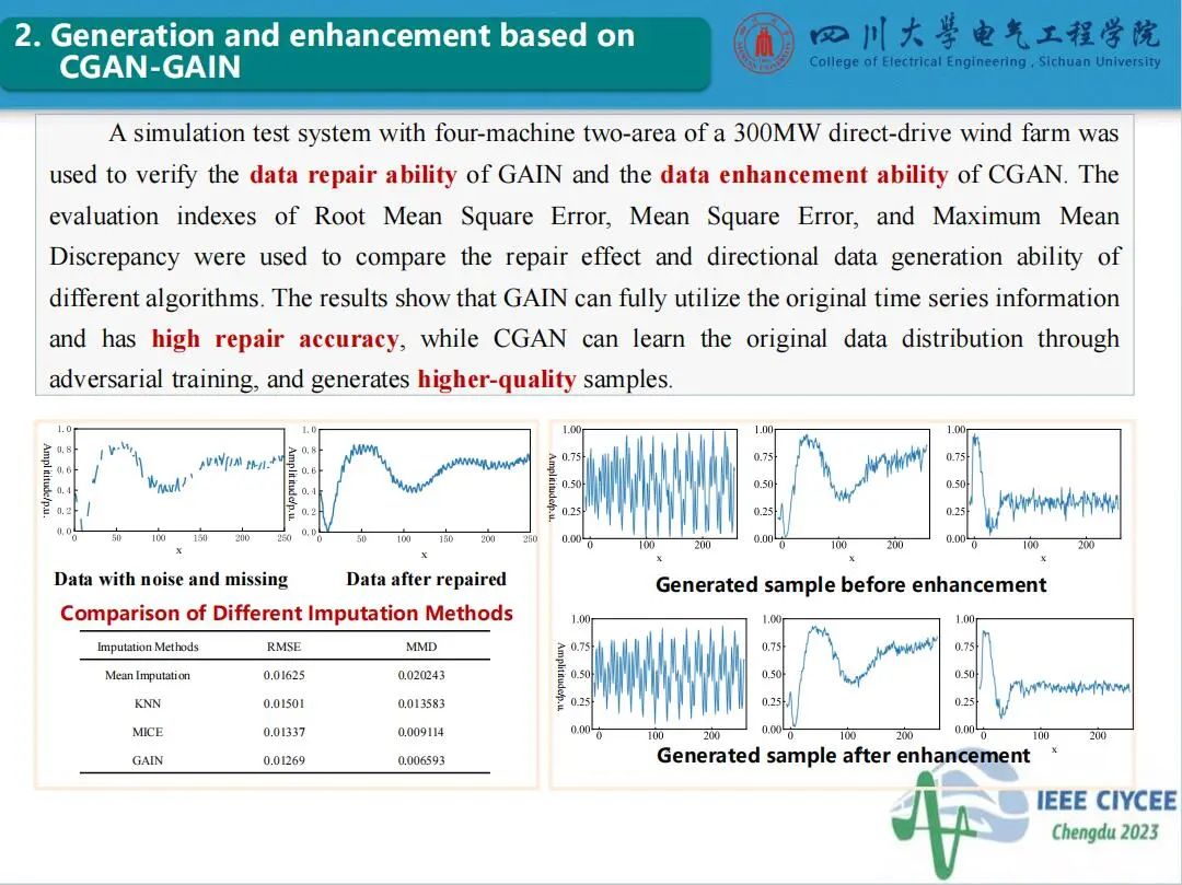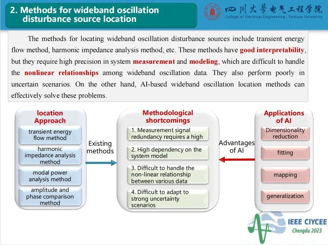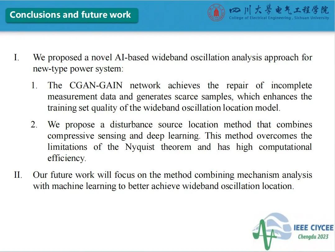 特聘副研究员郑宗生作了题为“电力系统宽频振荡扰动源定位智能增强技术”的主旨报告,介绍了目前电力系统宽频振荡扰动源定位面临的问题及人工智能技术应用于振荡源定位的挑战,分享了团队在基于条件生成对抗网络和生成对抗插补网络的数据智能增强方法和基于压缩感知与软阈值迭代算法的电力系统宽频振荡扰动源分级定位方法的研究工作。经本人授权,与大家分享报告PPT。
