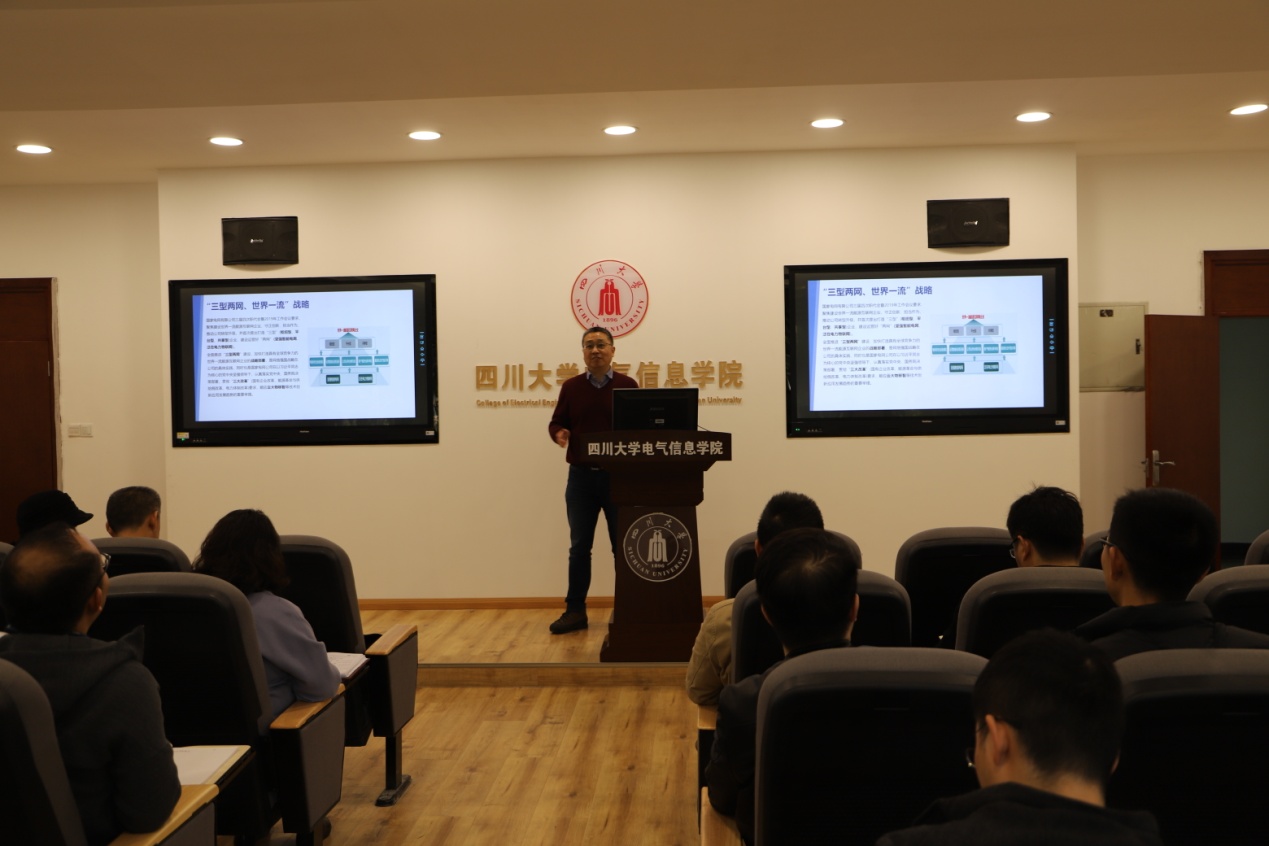 举办“泛在电力物联网建设方案研讨会”,会议在学院学术报告厅基础教学楼B206召开。院长肖先勇教授、电气工程系主任王渝红教授、系第一支部书记赵莉华副教授、系副主任陈实及相关专家和教师出席本次研讨会。