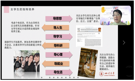 会议由IEEE PES主席Jessica Bian、IEEE Fellow别朝红教授 、IEEE PES WIP前任主席李若梅博士致辞。在年会圆桌论坛中电气工程系主任王渝红教授以“静待花开—论女学生的工程培养”为题作了专题报告。王渝红主任从“导思想、导人生、导学习、导科研、导心理、导就业、导生活”7个方面分享了自己培养学生,特别是女研究生培养的经验。女学生由于存在个体差异,作为女导师更需要关注女研究生的情感体验,针对女学生制定合适的职业规划和培养方案,引导她们不断增强“自尊、自信、自立、自强”意识,鼓励女学生除科研外拥有自己的爱好和生活,陪伴她们健康成长。