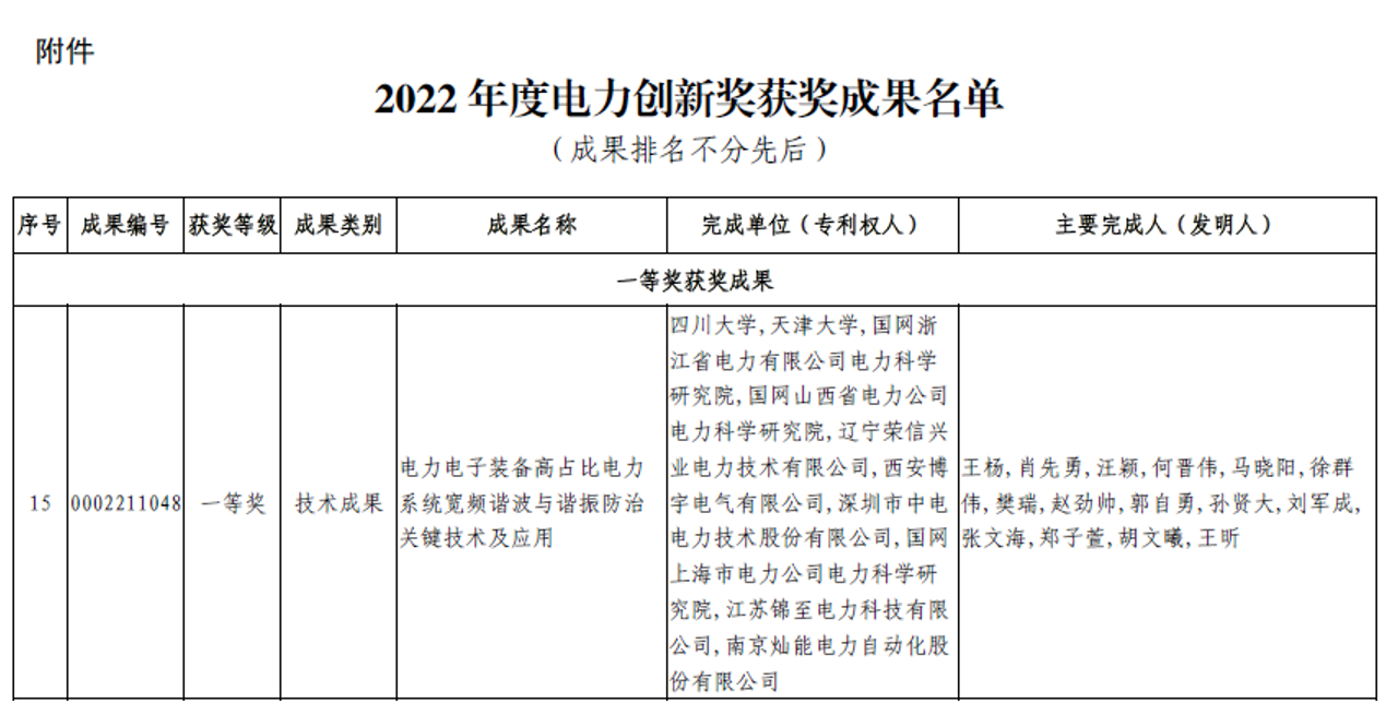 电能质量与优质供电团队牵头的“电力电子装备高占比电力系统宽频谐波与谐振防治关键技术及应用”荣获中国电力科技创新奖一等奖。该项目第一完成单位为MX动漫
