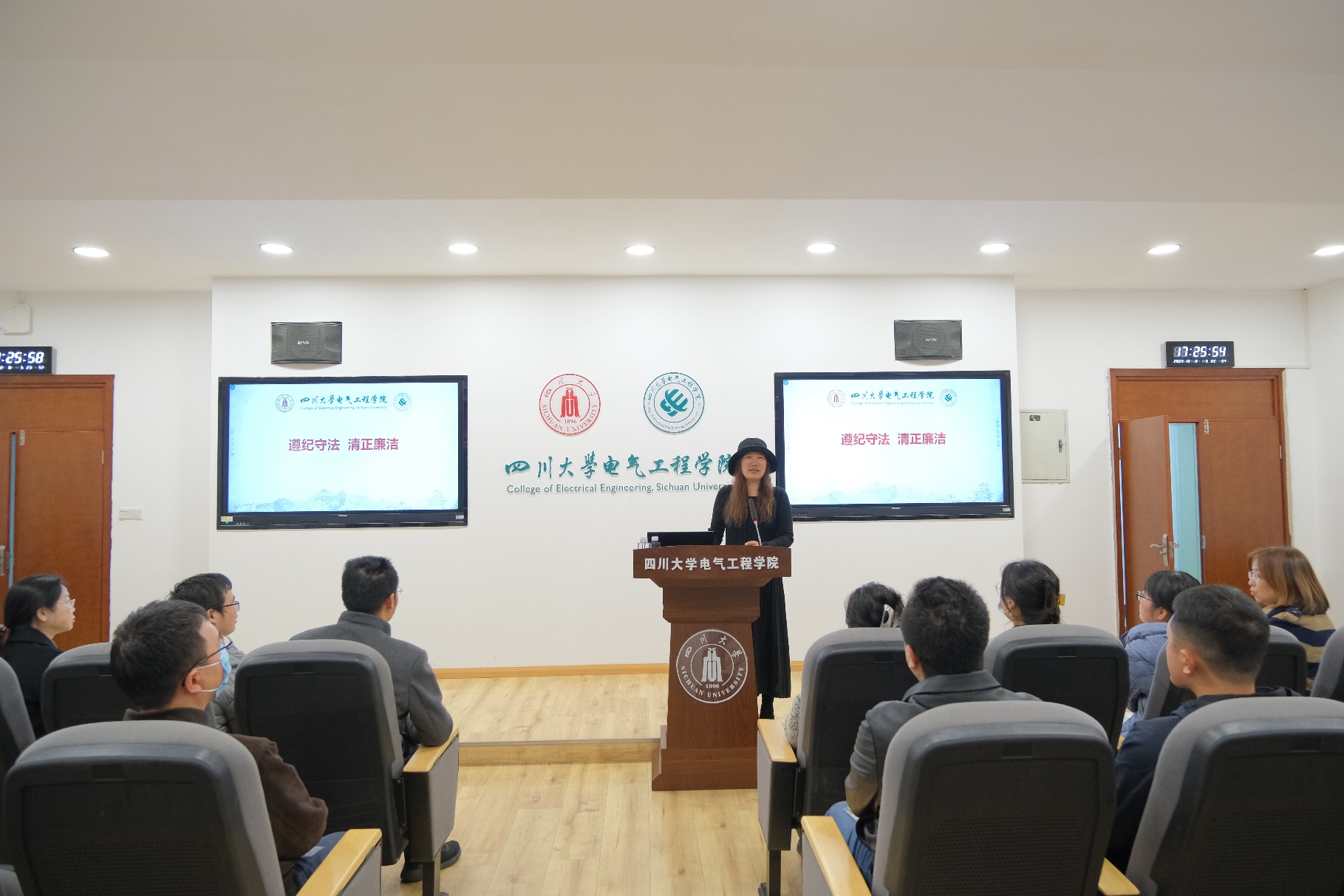 12月8日下午,学院党委副书记兼纪委书记张英敏以“遵纪守法 清正廉洁”为题,从遵纪守法、勤政为公、廉洁自律等三个方面对新一届党支部书记、新任教工支部委员们进行了廉政教育。