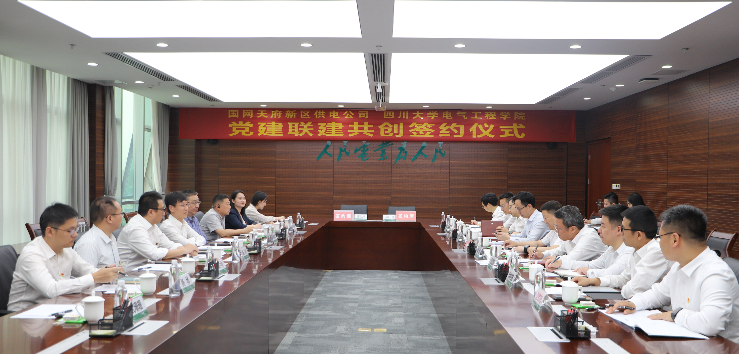 党委与国网天府新区供电公司党委签订党建联建共创协议。学院党委书记赵昱辉,副院长、电气工程系党支部书记陈实,国网天府新区供电公司总经理权锐、党委书记周毅,及双方相关部门负责人参加签约。天府公司总经理权锐主持了签约仪式。