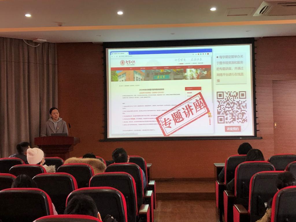 活动第四部分,图书馆知识服务中心雷琴同志结合电气工程专业详细介绍了学生常用电子资源数据库、工具和信息素养教育服务。她从期刊、专利、学位论文等方面给同学们介绍了如何去寻找专业文献资源,并利用“一小时讲座”等信息素养教育提升科研前沿追踪、文献调研和综述、选题、数据可视化呈现等论文写作能力。