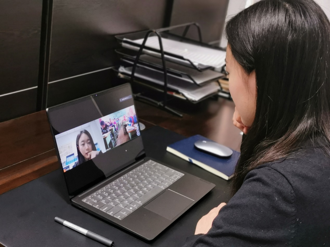 随后,邓靖微通过远程会议与城关小学的同学们实时互动,引导大家围绕“梦想与未来”的话题各抒己见。现场气氛热烈。