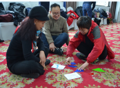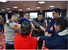 游艺活动分两个部分,第一部分是“七巧板”的团队活动。大家在团队任务中,通过沟通,合作,信息共享,资源配置和整合等,完成一系列复杂的任务。