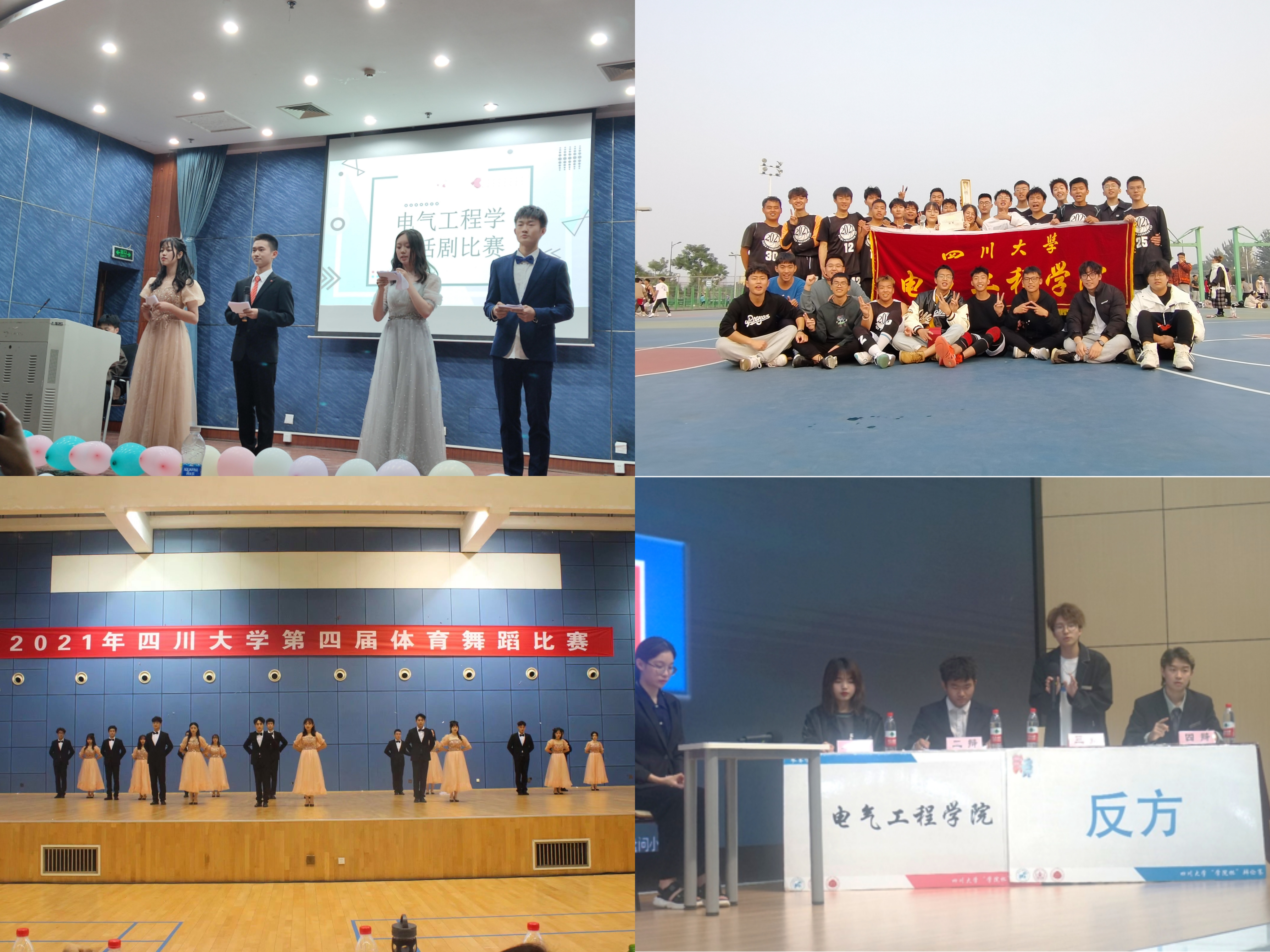 体育舞蹈比赛(左下)、“凤凰展翅”辩论赛(右下)