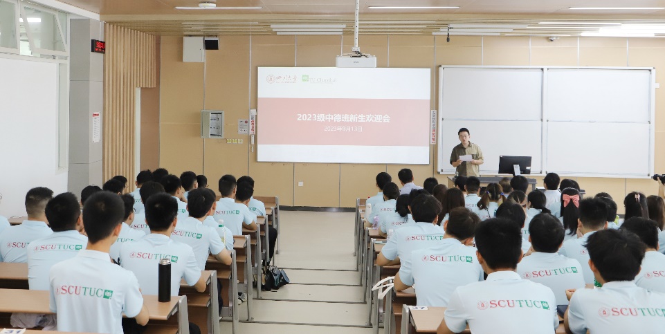 与德国克劳斯塔尔工业大学合作举办的电气工程及其自动化专业本科教育项目2023级新生欢迎会在江安校区举行。学院党委书记赵昱辉,副院长李长松,2023级中德项目班主任代表、电气工程系教授贾申利,电气工程系党支部书记陈实及该项目行政、辅导员老师,全体2023级本科新生参加了欢迎会。欢迎会由电气中德项目辅导员朱愉田主持。