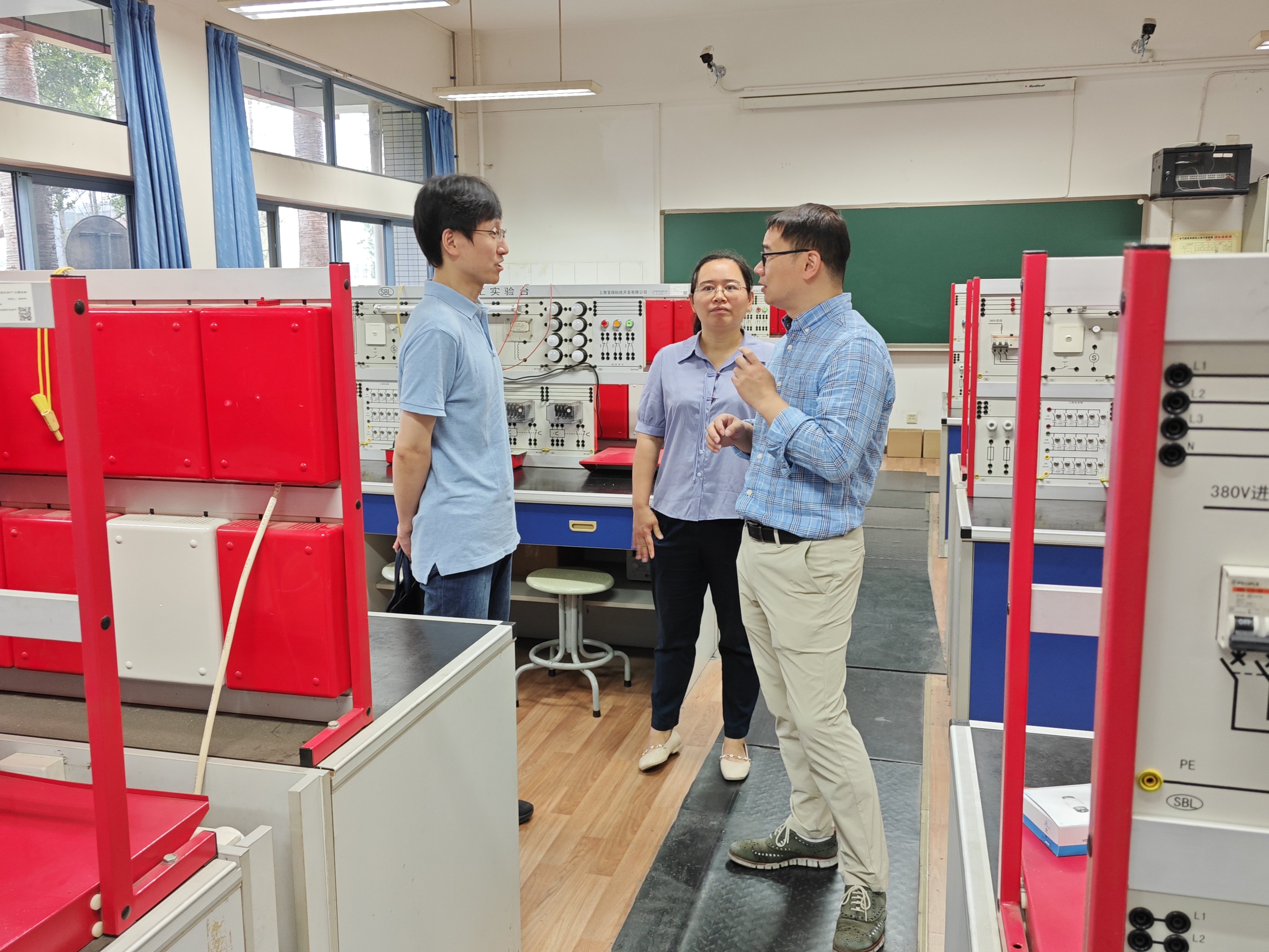 为广泛听取师生意见,推动学院主题教育走深走实,6月16日,学院党委书记赵昱辉、副书记戴婷婷一行来到江安校区,先后走访调研了电工电子基础实验教学中心、能源电气材料与智能装备实验室,深入江安校区西园17舍“一站式”学生社区服务点、学院中德合作办学项目办公室,并深入2022级本科生《形势与政策》课堂,调研了解学院人才培养等相关工作。