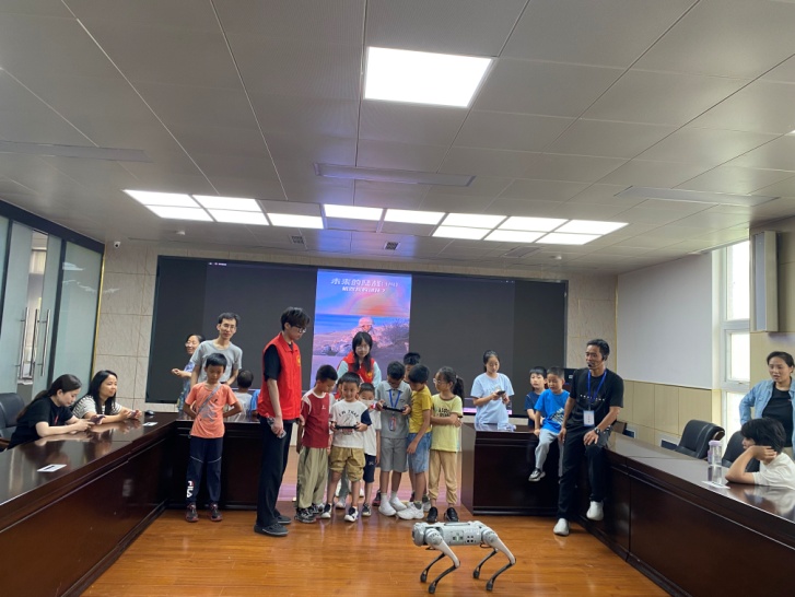 抵达五楼实验室,罗江陶老师用生动有趣的视频激发了小朋友们对智能机器人的兴趣。接着通过对机器狗的演示和互动,使整场研学的氛围更加热烈。