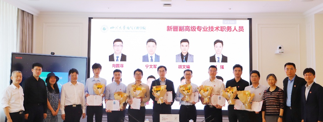 学院为2024年度新晋副高级专业技术职务的教师颁发聘书。新进副高教师代表付强、向国菲在发言中对学校和学院的关心培养、对所在科研团队的帮助支持表达了感谢。他们表示将始终坚守初心、牢记使命,持续精进教学本领、深耕科研领域,为推动学校“双一流”建设和国家科技自立自强贡献自己的更大力量。
