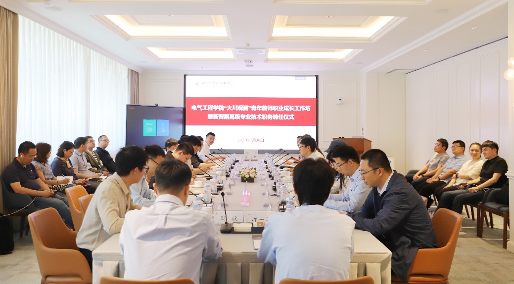 在望江校区举行“大川观澜”青年教师职业成长工作坊暨新晋副高级专业技术职务聘任仪式。学校人才工作办公室副主任穆飞,研究生院招生办公室主任李文强,数学学院教授张旭,计算机学院教授雷文强,学院领导班子成员,各系中心书记、主任,教授代表,2024年度新晋副高级专业技术职务教师,以及青年教师代表参加会议。会议由学院党委书记赵昱辉主持。