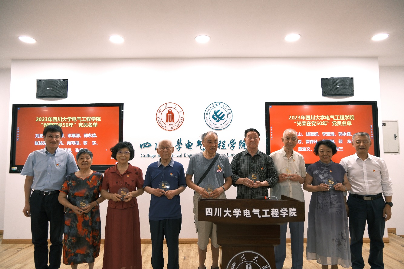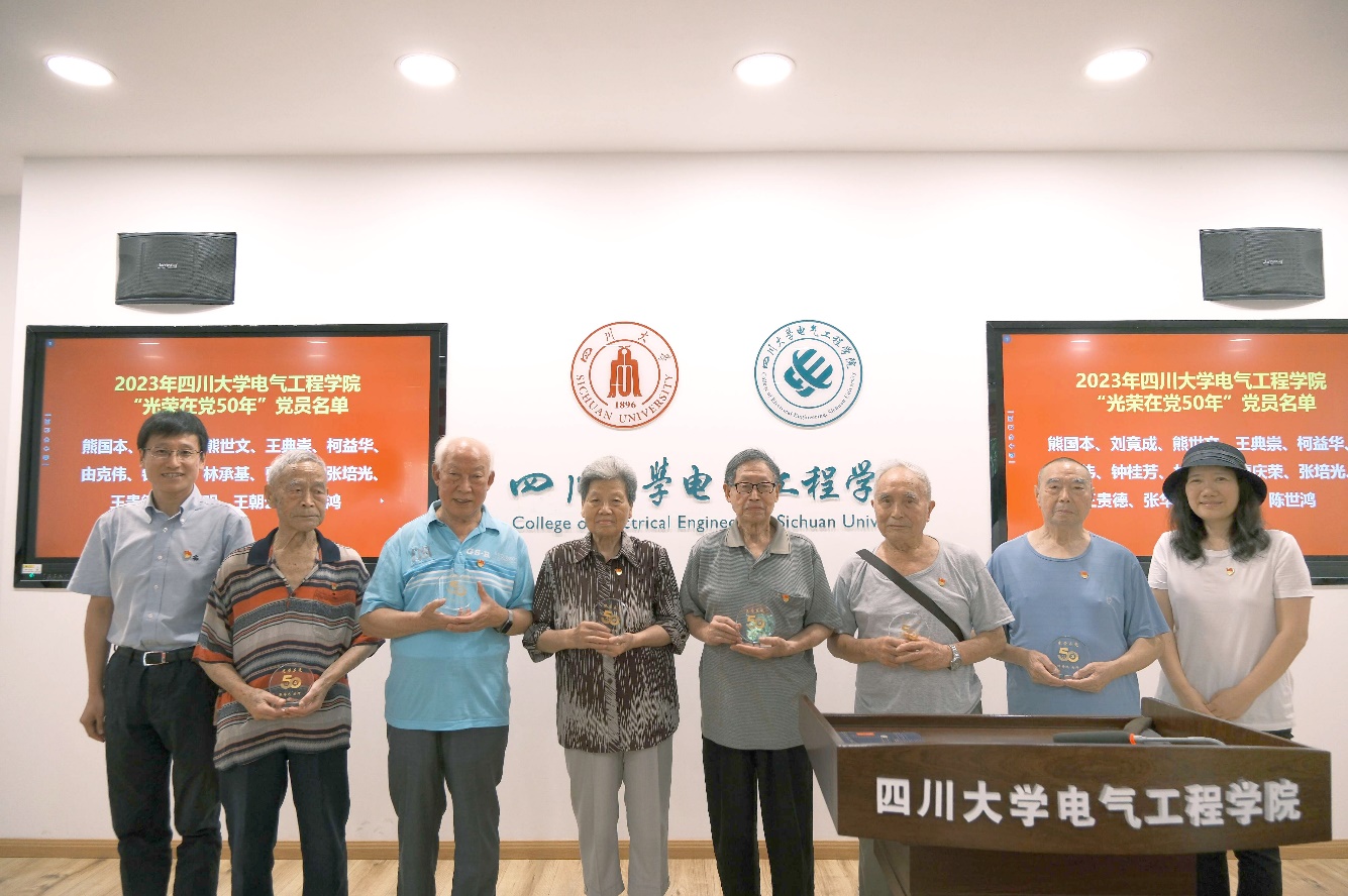 院党委书记赵昱辉、院长肖先勇为熊国本等25名“光荣在党50年”老党员颁发纪念牌