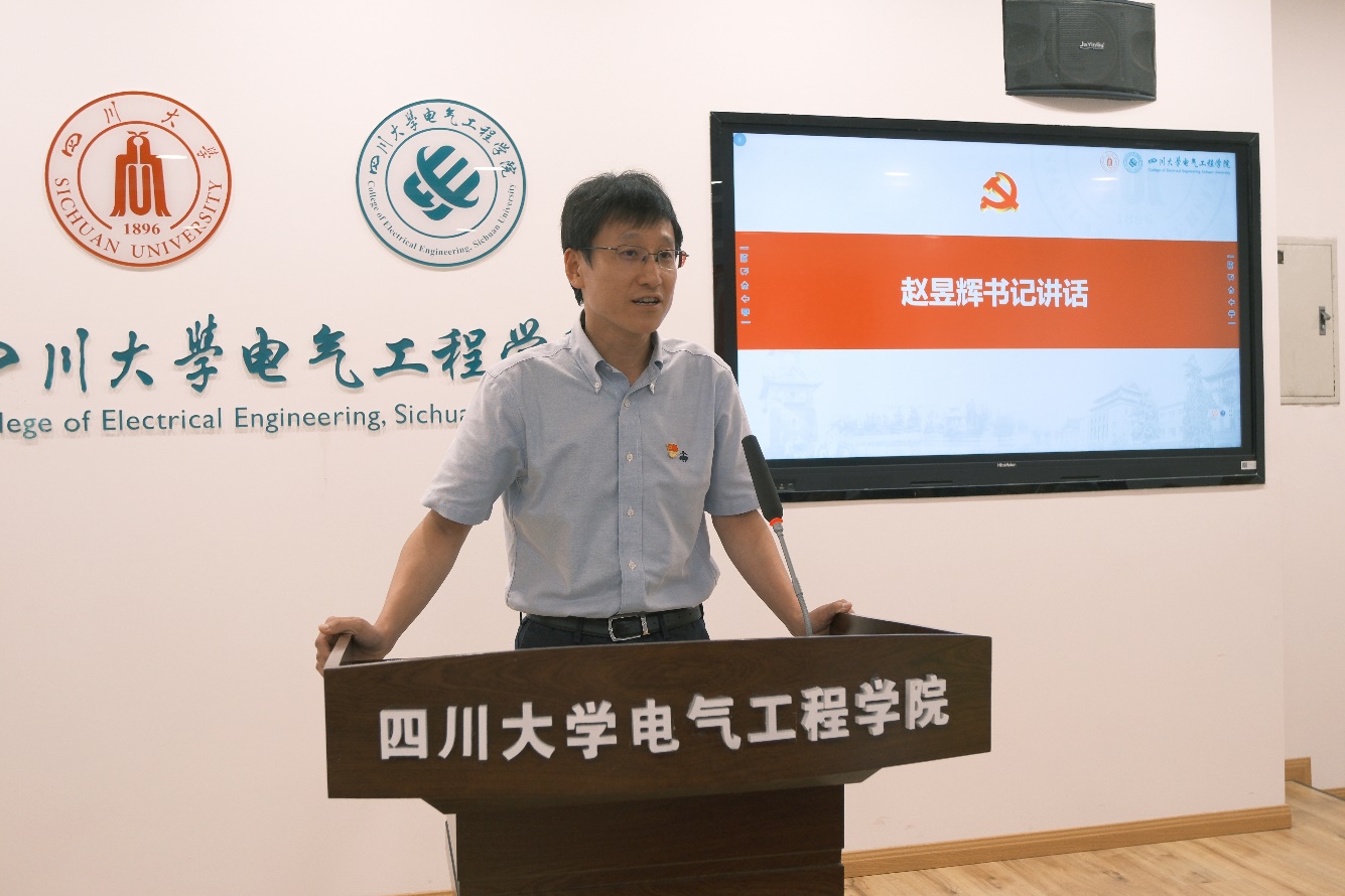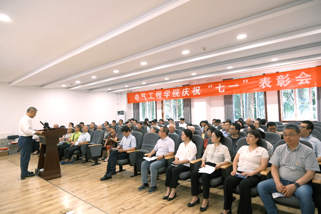 学院党委书记赵昱辉在讲话中代表学院党委向全院党员同志致以节日的问候,向为学院党建和事业发展作出积极贡献的全体教职工表示感谢,向“光荣在党50年”的老党员、受到表彰的先进集体和个人表示祝贺。他首先传达了甘霖书记在学校“七一”表彰大会上的讲话精神,以“五个抓”的明确要求,以更高的标准,持续深化“三个一流”创建,更好地发挥班子组织领导作用、党支部战斗堡垒作用、党员先锋模范作用。一是持续强化政治建设,落实政治引领到位;二是持续强化融合融入,落实赋能发展到位;三是持续强化巩固提升,落实效能发挥到位;四是持续强化文化浸润,落实典型示范到位;五是持续强化从严治党,坚守纪律规矩到位,以高质量党建引领学院事业高质量发展,奋力答好“创建一流班子、一流组织和一流队伍”的电气答卷。