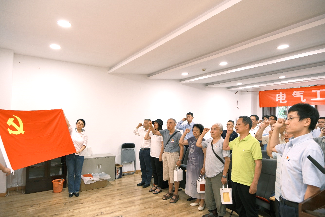 赵昱辉书记带领学院党员面向党旗,一起重温入党誓词。